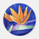 The vibrant fan like crown of orange petals of a bird of paradise flower are in contrast to the deep plush royal blue background. The watercolor art flower painting features a profile view of the bird of paradise flower. This flower is known as the Crane Flower in South Africa. Personalize this Bird of Paradise flower magnet pin with your own text and images using the "Customize It" button to create a special Bird of Paradise flower gift!