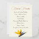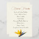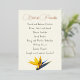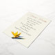 Bird-of-paradise wedding table seating cards with rose gold foil. Seat guests by table name (or number) by listing their names on one table seating card. This seashell card has rose gold foil text for the title at the top (or choose gold or silver foil). Names of guests are printed in the centre, with a yellow bird-of-paradise flower at the bottom. The title can be the flower name, or a written table number.