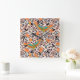 Bird of Paradise, leopard skin, Coral and turquois Square Wall Clock