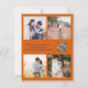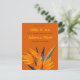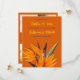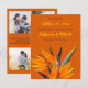 Modern photo save the date cards in orange with bird of paradise flowers design. Simple text with names, date and location of wedding on the front with four photo templates on the back. Also add your wedding website QR code to direct wedding guests to your website for more information. This is a smaller 4x6 size card and changing the size will alter the photo placements and design. This design is also downloadable to share online.