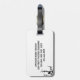 Make your baggage stand out on an airport carousel with unique tag designs! This contemporary fine art luggage tag features a black and white modern abstract pattern of a silhouette Dark-eyed Junco (Junco hyemalis) perched on a bare branch high in a tree. This bird is actually a kind of small, grey and white sparrow. The back has all your personal information as well as another little bird. All text can be customised.
