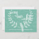 Corporate or business holiday card with a teal blue background with soft white leaves, ivy, flowers, and branch design with a white bird on laurel and white text that reads Merry and Bright. It's easy to customise with your business or corporation name. Matching back.
