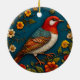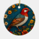 Bird Perched Amongst Colourful Flowers Ceramic Tree Decoration