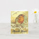 The front of this vintage style thank you card design features the appreciative message "Thank You!" in script like text, along with a depiction of a bird perched on a branch. The inside features a personalised message of thanks. A card like this could be used to thank somebody who has done something special.