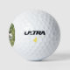 This unique golf ball features a cute little grebe floating on the calm water. This animal's fluffy back feathers stand out against the smooth water surface. Green grasses and reeds as well as the adorable bird are reflected in the water in this nature photo.