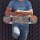 Bird’s eye view - unique art design for your skateboard. .The illustration has orange fiery Fall setting, forest, village pathways. Perfect for hanging on walls or full fledged skating outdoors. The monogram "A” can be personalised with your choice of alphabet and style. Add an instant style to your routine with this stylish skateboard.