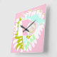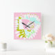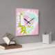 Bird’s Nest - Flamingo Pink White Square Wall Clock