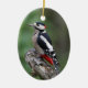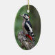A great spotted woodpecker is pictured on one side of this product and on the other side are the words: Bird Watcher printed in black at the top. A pair of binoculars are in the centre and the words: Listen Observe are printed in black beneath the binoculars. A bluish tint is used at the background (similar to the sky where birds fly).
