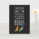 Know a birder whose mind is always in the treetops? This hilarious bird watching card perfectly captures that feathered daydream with the quote: **"I Might Look Like I'm Listening To You But In My Mind I'm Watching Birds."** This **themed** and **unique** design is the perfect **gag** card for any bird **lover**, **birder**, or **ornithology** enthusiast, delivering a perfectly relatable dose of **humour** that every **birding** fan will appreciate.