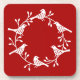Pretty festive Scandinavian bird and rosehip wreath. White on a red background.