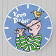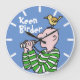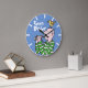 Clock for a birder. Cartoon bird watcher with binoculars has a bird standing on his head! Birdwatcher clock.