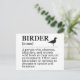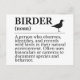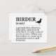 A clean typographic layout featuring the definition of birder. For bird lovers and nature observers who record wild birds in their habitat with binoculars or cameras. Ideal for birding, wildlife fans, and outdoor enthusiasts.