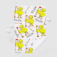 Birdie in curly text with a yellow chick holding a golf club and the flag in a golf hole is a funny gift design for golfers.