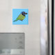Top quality magnet, very professional, and well made. Colors are very vibrant, more so than the preview, so that the background is actually a bright pink. The blues and greens on the bird are equally bright, so it's pretty, and the image is sharp and clear. The image and text fit very well, true to the preview, and the text is easy to read.