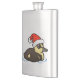 The product is a good size and came exactly as it was pictured. The lid is not attached to the flask, which could be dangerous on drunken nights... The print came out surprisingly well and looks very sharp. Would definitely recommend.