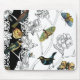 Birds and Butterfly on a Black & White Background Mouse Mat