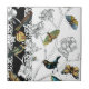 Birds and Butterfly on a Black & White Background Tile