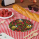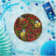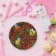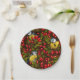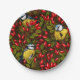 Birds and dog rose hips, green and red paper plate