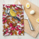 Birds and dog rose hips tea towel
