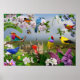 Beautiful image with birds and flowers. Nice gift poster to decorate your birthday room.