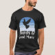 I give wanted to give this a 4 instead of a 5 because these Basic DARK T0shirts run unexpectedly SLIM or Narrow. Which is great if you do not have a potbelly, but I have a paunch. It isn't the shirt's fault that I've got a beer belly. The design and shirt itself is a quality cotton shirt. The color is more of a deep purple, but still a very pretty color. The Basic DARK T-shirts run a bit SLIMMER than the Basic Ts. The neck is a fraction narrower (or seems to be narrower) also. I'm a paunchy middle-aged woman and my neck is 12 inches (31cm) thick and the neckline fell about the same as in the photo of the man, and I had the desire to tug it a bit. So if you're a thick necked man or like loose shirts, be aware these are slimmer shirts. Once I get rid of my lockdown paunch it'll look great. The shirt washed well in cold water with no apparent bleeding. We don't have a dryer, so it hung dry. Did not shrink. Love the colors and the design. The design looks smaller on my shirt than it does on the model on-line. But still, it looks good on the shirt. The printing looks as it does on the model, just the size seems fractionally smaller. Washed garment in cold water, hung dry and design appeared unaffected.