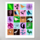 Birds, Animals and Plants Silhouette Collage Art poster. Colorful poster that would go great in any room even children's room or nursery.