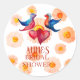 White daisy flowers and watercolor birds , personalized Classic Round Sticker for bridal shower.