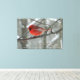Brilliant red cardinal has a great spot to view his world, and the seeds below. Large wrapped canvas print makes an ideal item for home decor !