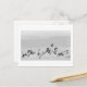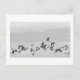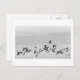 A flock of birds fly across the postcard. A photograph of Little Gulls stylized in shades of grey.