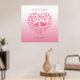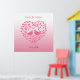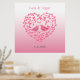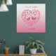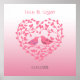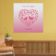 Cute pink birds in love in a heart-shaped wreath of leaves on pink and white gradient background