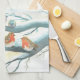 Birds in the white snow winter tea towel