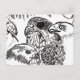 Black and white ink wash illustration of birds of prey. Thank you for viewing my designs!