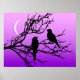 Print depicting two little birds, perched on a branch, as a black silhouette against a twilight sky gradient of deep purple to soft violet, with the slender crescent of a new moon