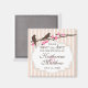© 2011 Socialite Designs. Our elegant save-the-date wedding announcement magnet has a pair of birds on a flowering branch silhouetted against a silvery peony coloured striped background. Your text area will be bordered with both peony silver and silver cloud colours. Text colour is currently the same as the birds. Do you require HELP with customising? Please do not hesitate to contact me with your requirements.