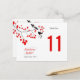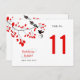 This elegant and romantic table number card features two black birds in a delicate tree branch with red leaves. The bride & groom's names as well as the wedding date are beneath the branch. The table number is clear and customisable. The reverse side is the exact design so that it can be seen from both sides.