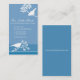 Two little white birds sit on branches to frame this business card. The background is a tonal slate blue. Appropriate for a wide range of businesses.