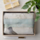 A male and female Eurasian Blackcap warbler sit on a white flowering branch atop a sheet of parchment and an oil painting in teals and neutrals. Great for decoupage or furniture transfer projects. For the crafty nature lover.
