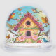 Vibrant watercolor artwork featuring colourful birds, a cosy birdhouse, and bright flowers under a cheerful sunny sky, evoking a peaceful and lively garden scene filled with nature's charm.