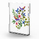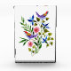 Pink and Blue Flowers with brightly coloured birds adorn this watercolor painting in a photo block. You can change the image to one of your own.