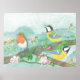 Birds singing on a blossoming tree branch poster