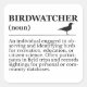 Minimal typographic design defining a birdwatcher. Ideal for those who love observing and identifying wild birds in nature, from recreation to citizen science.
