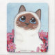 Birman Cat and Pink Flowers Cat Art Mousepad