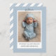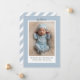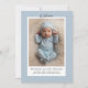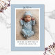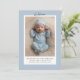 Announce your little one's arrival in style with this minimalist and modern birth announcement card! Featuring a soft dusty blue background, this elegant design showcases your precious newborn's photo within a crisp white frame. Delicate script whispers "welcome" at the top, while your baby's name, birth date, weight, and a loving message from you are displayed below. A simple and sophisticated aesthetic. Personalise the card with a vertical portrait photo of your newborn and easily edit the text templates for your own custom baby announcement card.