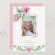 Birth Announcement| Eucalyptus leaves, whimsical foliage along with pretty pink poppies grace a geometric gold frame. Coordinated colour on reverse that is customisable - Features a simple classic text style (that can be changed if you like just Click Personalise this template then in the drop down, choose Click to customise further- here you can change the font and text colours as well as background colour) This is also part of a design coordinated wedding suite collection designed by the BarefootBride™.