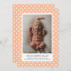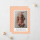 Announce the arrival of your little one in style with this adorable polka dot birth announcement card! This modern design features a playful pattern of colourful polka dots on a peach background. It's the perfect way to introduce your newest family member with a touch of fun and personality. Personalise this card with a vertical portrait photo of your newborn and easily edit the text templates for your own custom baby announcement.