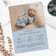 Celebrate your little miracle with this birth announcement card for preemies. The modern design features a soft blue background and a prominent space for your baby's photo. After announcing your baby's name there are three dedicated sections showcasing your baby's birth details, the number of days in the NICU and homecoming details. The card is signed off with a message from you which gives you the opportunity to express gratitude for the hospital team and your elation at having your baby home. The perfect announcement card to highlight your preterm or premature baby's strength and journey. Personalise this simple, minimalist design with a horizontal landscape photo of your newborn and easily edit the text templates for your own custom baby announcement.