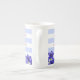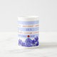 The Flower-of-the-Month and Birthstone for July on a striped mug. The flower and gem pair for July is the Delphinium and the Ruby. The mug has the meaning of the flower-of-the-month and birthstone. Add an optional monogramme - or delete that detail altogether.