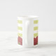 • The Flower-of-the-Month and Birthstone for August on a striped bone china mug.