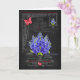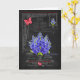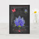 This card with a luxe look has hand-drawn flower illustrations of birth flower bouquets and bright birthstones for July birthdays, anniversaries and special days. Black chalkboard with antique engravings of decorative hardware provide a nostalgic background for the bunches of flowers, gems and bejewelled butterflies.