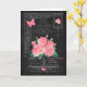 This card with a luxe look has hand-drawn flower illustrations of birth flower bouquets and bright birthstones for June birthdays, anniversaries and special days. Black chalkboard with antique engravings of decorative hardware provide a nostalgic background for the bunches of flowers, gems and bejewelled butterflies.
